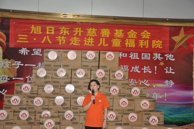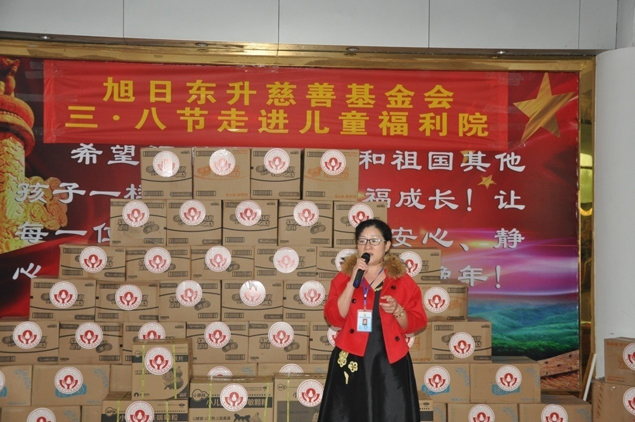 上午9:30,捐贈儀式正式開始,旭日東升慈善基金會常務理事長劉景萍女士與海口市福利院院長唐鳳英女士攜手掀開了捐贈物資上的紅綢,這批物資包括社會福利院急需的兒童藥品、牛奶、尿不濕、書包等生活學習用品,共計價值4萬余元。社會福利院唐院長表示,非常感謝像ag公司官網這樣的愛心企業和基金會的志愿者們為國家福利事業做貢獻,也希望更多愛心企業、愛心人士能加入我們行列,關愛孩子們的成長。雖然初春的天氣還帶著一絲寒意,但志愿者們的關愛行動還是為孩子們帶來了溫馨的祝福,更帶來了春天的溫暖。常務理事長劉景萍女士講話