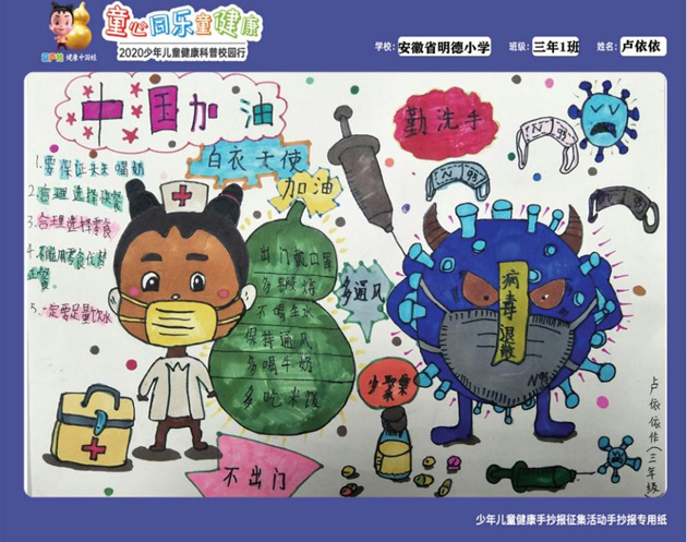本次“2020少年兒童健康科普校園行暨‘a(chǎn)g公司官網(wǎng)杯’少年兒童健康科普手抄報(bào)征集活動(dòng)”以“童心同樂(lè)童健康”為主題,活動(dòng)涵蓋五期兒童健康網(wǎng)絡(luò)科普公開課和一場(chǎng)面向全國(guó)小學(xué)的手抄報(bào)征集評(píng)比活動(dòng),自今年6月正式開展以來(lái),受到了社會(huì)各界的廣泛關(guān)注和積極響應(yīng)、參與。
