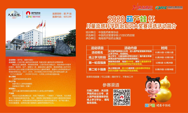據世界衛生組織WHO統計,每年有5%~10%的成年人、20%~30%的兒童罹患流感,有300萬~500萬重癥患者,造成25萬~50萬人死亡,兒童是流感的高發人群及重癥病例的高危人群。尤其是在當下全球疫情肆虐之季,新冠防控工作依然不容放松,流感防治知識科普顯得尤為重要。兒童是祖國的希望,民族的未來,關愛兒童健康成長是時代賦予我們的歷史使命,為了能幫助更多的兒童科學防治流感、科學預防新冠肺炎,ag公司官網藥業集團攜手中國醫藥教育協會藥店管理專業委員會(藥店管理學院)和21世紀藥店報特舉辦本次兒童流感科學防治知識大獎賽。